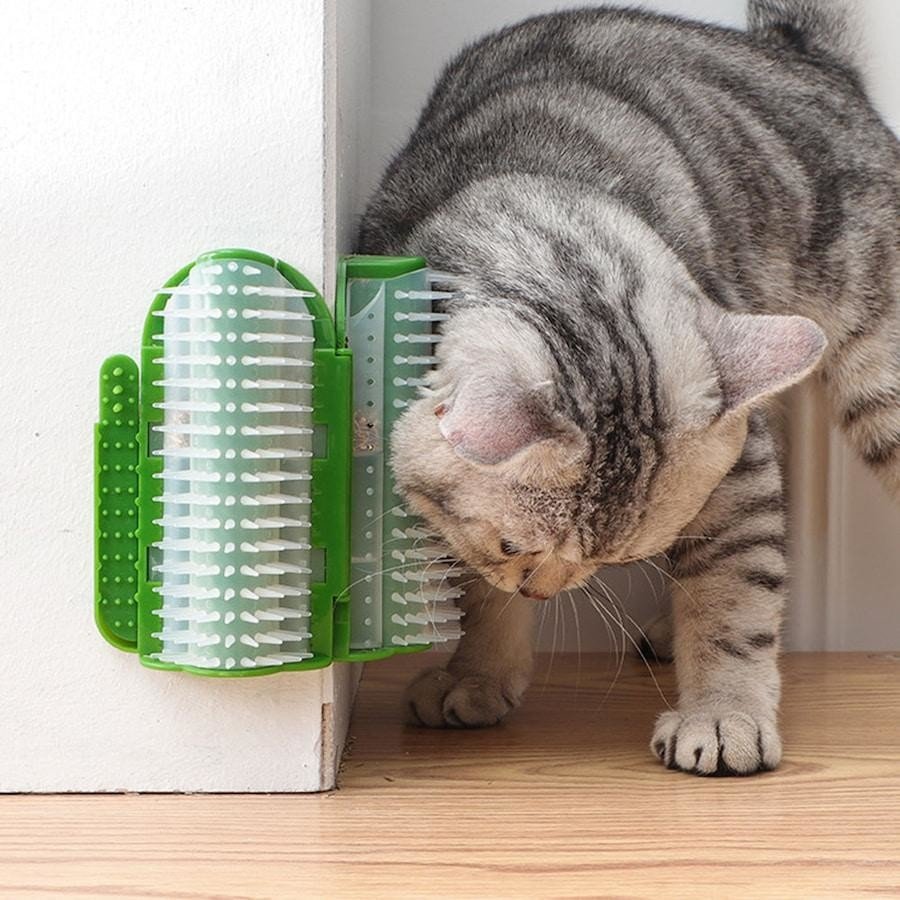 Give your cat the ultimate spa experience with our Cactus Corner Groomer. Designed to fit perfectly on any wall corner or furniture leg, this self-groomer allows your cat to enjoy a satisfying scratch and massage whenever they want. The soft silicone bristles mimic a natural grooming sensation, effectively removing loose fur while keeping your home cleaner.